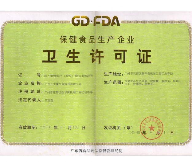 长生康卫生许可证