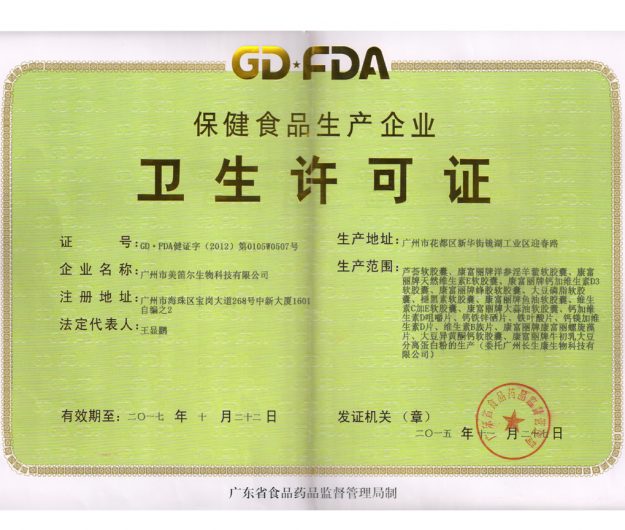 美笛尔卫生许可证